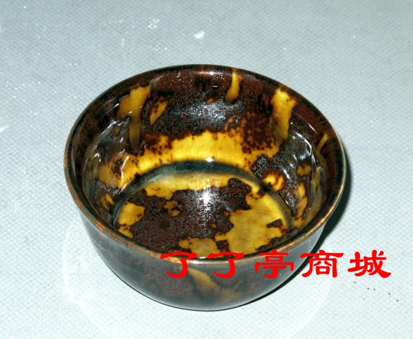 第二天,李申盛和夫人米承燕就首先按排做了玳瑁杯。我就一直在期待,五天后,我爱人一脸不快地把当天开窑的玳瑁杯抱回来,我赶快扒开上面压着的纸,只看到十来个白搭搭灰乎乎的杯子躺在里边,一下子我的头都发炸了。从那时开始,李申盛总是不定期的隔几天做几个玳瑁,想找回那一次的感觉。但是,不管他怎么做,都不精采,一连几个月都没得到好玳瑁。直到10月之秋,记得连续几天天气晴朗,早上8点,收到李申盛从窑炉边打来的电话:“玳瑁烧出来了……”电话里好久没有声音,然后就挂断了,他肯定很激动。我替他高兴,几个月了,我天天等这个电话,不成功的试验品已经堆了一大箱子了,在考验着李申盛的承受能力。终于,“柳暗花明又一村”。