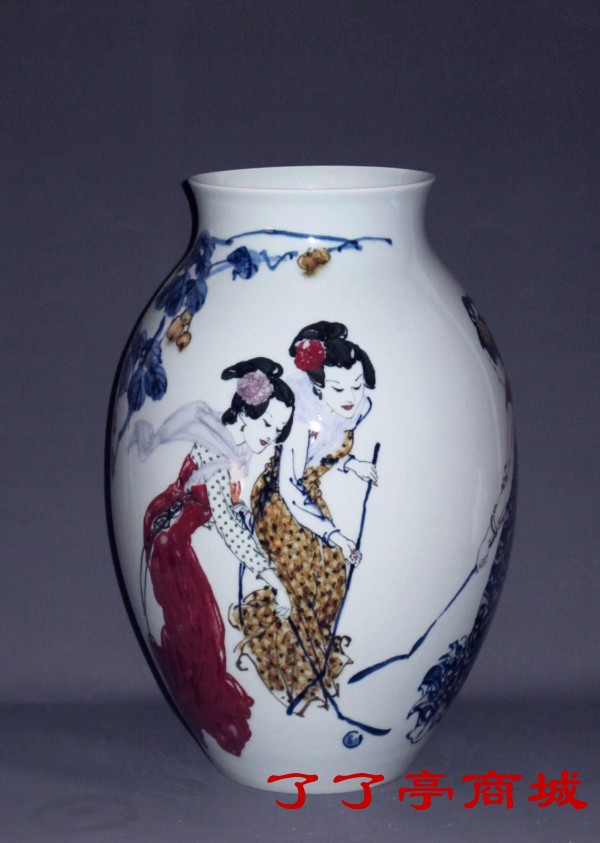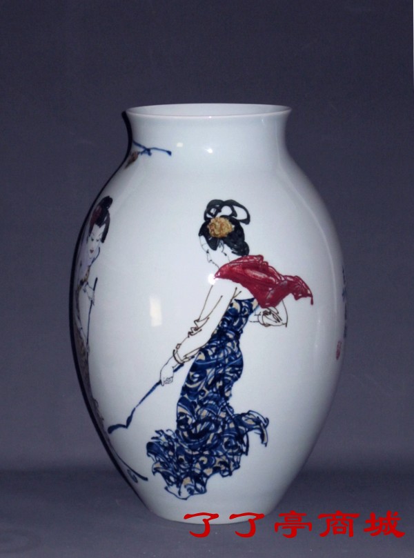 就是这样一个李一新,从纸质的国画进入瓷质的釉下瓷画,他悟到了一个极好的切入点,这个切入点不仅充分展示了他的艺术想象力,体现了他特有形象记忆能力、造型能力、色彩感受能力、对高温颜色釉的深刻理解。无论仕女还是老相(男士)均是气质优雅、端庄雍容、气度不凡、潇洒风流。他的画风中既有西画中强调的色彩和光影明暗,又有中画的神似风采,还有一种景德镇陶瓷艺术特有的祥瑞、华贵。这三种文化艺术精华的有机汇合,使李一新的陶瓷创作能在当代众多的“名人名作”中脱颖而出,诠释出他独有的个性强烈的艺术符号,引起收藏界高度关注、重视。