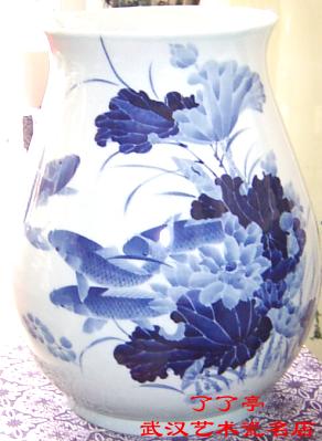 广口,直筒,收腹,圈足。作者进行了一些尝试,采用了通景全绘的方法,但也有一个主要的面,处理的景要丰富一些,其它部应就稍微放松一些,略有侧重。作品画得饱满而灵动,实中有虚,把风光描绘得清幽雅逸,秀色可餐,显示出大自然清新隽永的活力。