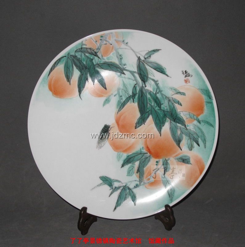戴玉梅 釉上彩“福寿图”12寸 瓷盘