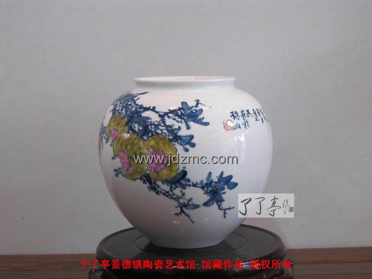 这一阶段,总觉得胡达民进步很大,每一次到他的工作室,都能看到一些清新的作品,瓷质的白哲,釉色的青亮而深沉.画面的不断更新,画风日趋成熟老到,都能让您了解他前进的步伐.他经常能拿出一些让您感觉很好的作品。今天刚刚出窑,选了二个小件作品,请朋友们欣赏。 陈也君/文