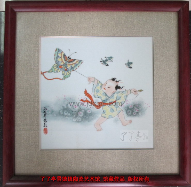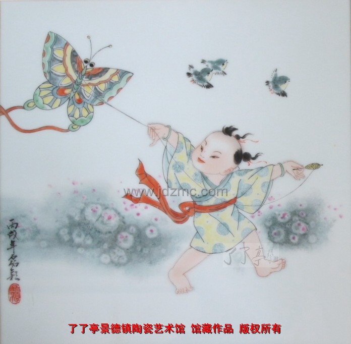 李磊颖的婴戏,是独立独行的自创名牌.她是陶院老教授施于人最得意的学生.讲起施教授,她感触很深.施教授看重李磊颖的才气.勤奋和敏悟.同时也是李老师的浙江同乡.施教授家里烧什么家乡莱,一定会把李老师请过去,像自己的孩子一样关心,爱护.有这么一个好导师授教与关怀.乃是李磊颖的福与缘.李磊颖是以受到注目的满科全优的成绩毕业的.在她彷徨前途之济,还是施教授,力邀李磊颖留校.李磊颖没有辜负这一切.她脚踏实地的努力着,奋斗着.李老师是个内向的,内秀的女子.对孩子充满着发自内心的爱,正是这种真诚的爱.和扎实的绘画功底.终于,从她手中走出了一群活泼.调皮,可爱的小精灵,为收藏家们送去了欢欣和谐的陶瓷文化的享受.受到收藏界的欢迎.艺木界的认同.今年嘉德筹备嘉德拍卖公司历史上第一次现当代瓷器拍卖,李磊颖作为中青年画家入选.为数不多的一个.当时嘉德负责这个项目的陈林林首次看到她的作品,很是喜欢,也很高兴.对她信心十足.