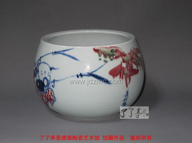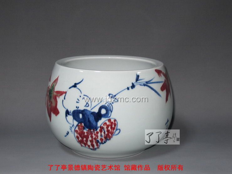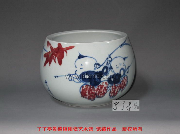 李云峰 青花釉里红 80件小品 婴戏红叶