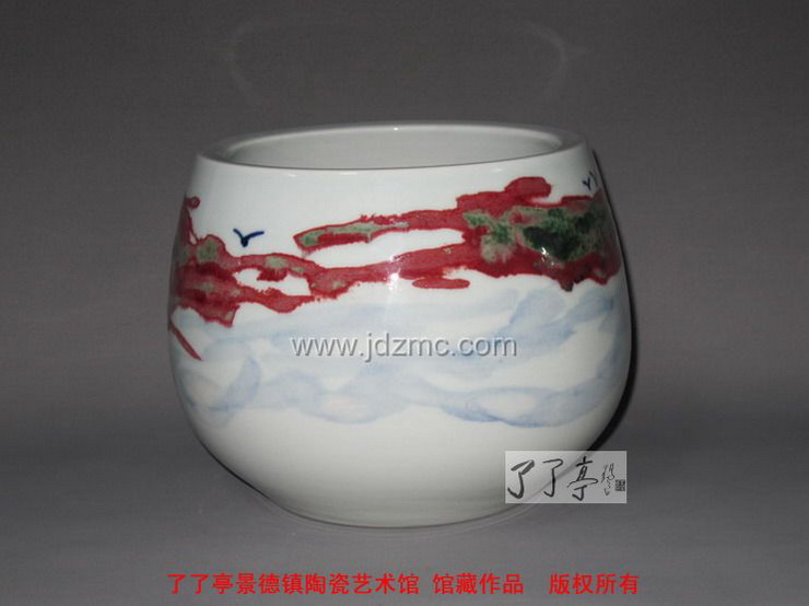 李云峰 青花釉里红 80件小品 婴戏红叶