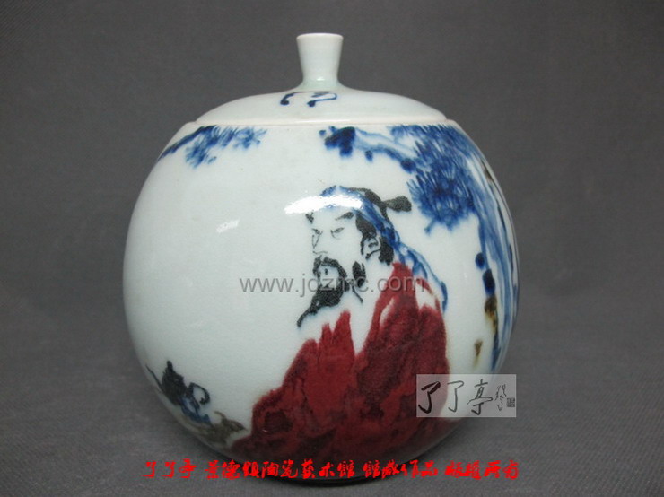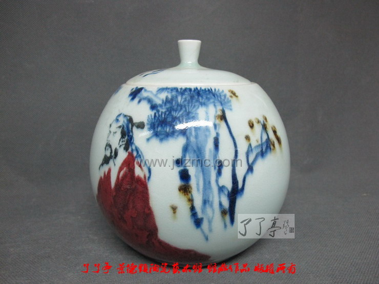 李一新坚特着一种最原始,最古老的画法,那就是用毛笔蘸着釉水一笔一笔直接画在光泥坯子上,但他所创作的高温色釉绘画,又是近代新品种.用高温色釉直接绘制瓷器,是近年来让陶瓷界,收藏界备受注视的一个新瓷种,其中最有影响的莫过于李一新的大哥李菊生(景德镇陶瓷学院资深教授,第五届中国工艺美术大师)的高温色釉综合装饰.但兄弟俩的工艺是有差别的,差别主要在于落笔的基底不一样.李一新是落笔光泥坯体上,于是他的作品,线条刚劲,轮廓分明,釉色古朴,沉着亮丽.而李菊生教授落笔于喷在泥坯的一层釉上,于是线条柔和,施展自由,色彩艳美,国画味浓.兄弟俩都是景德镇当今陶瓷艺术界的精英人士,作品欣赏见智见仁,每个人都会有自己的取向。了了亭.陈也君/文