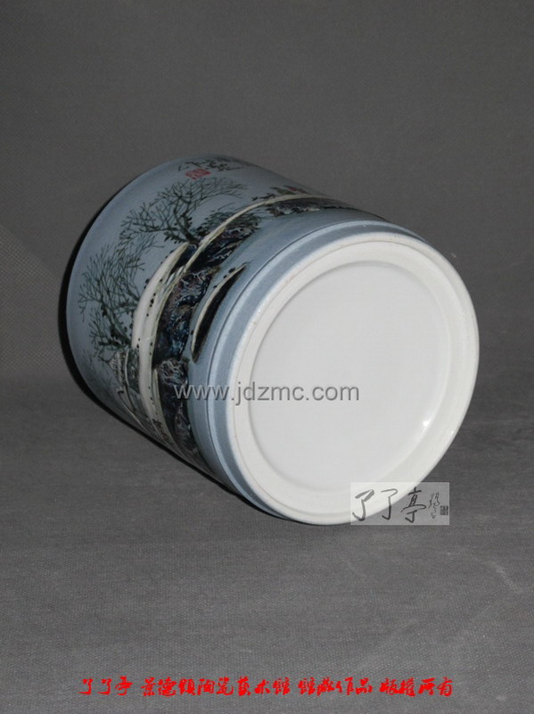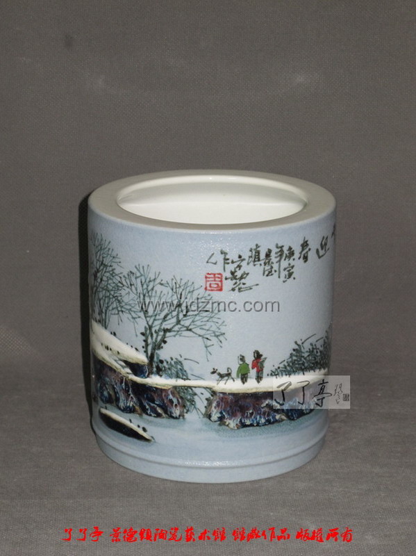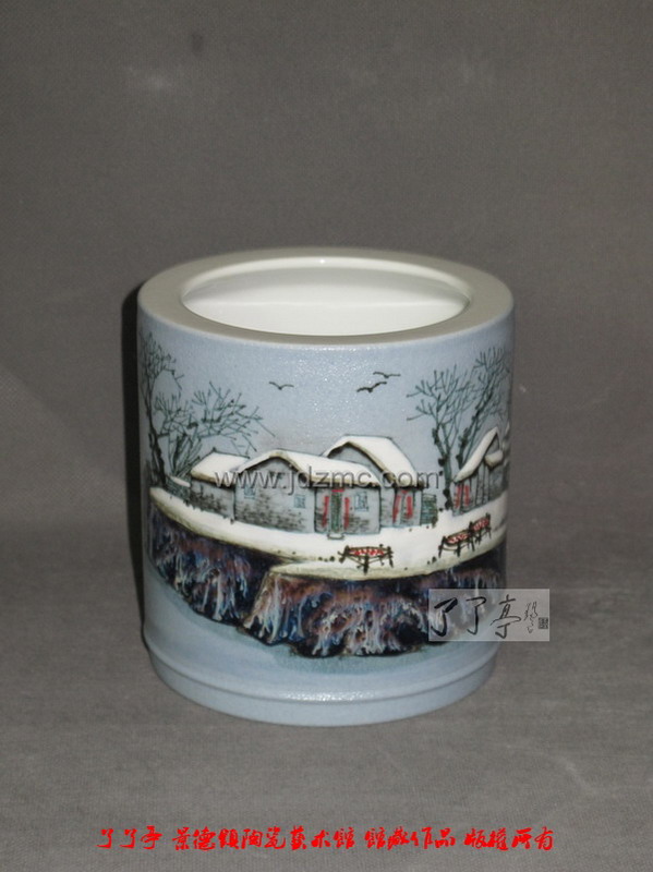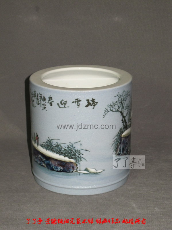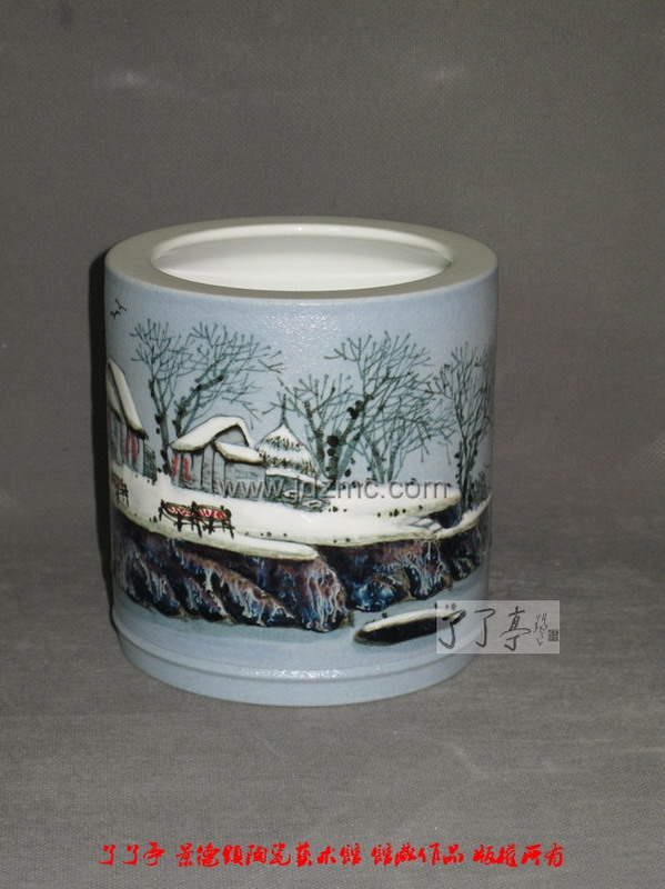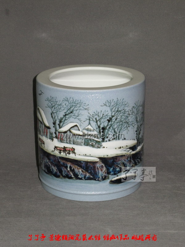 宁勤征 高温颜色釉“瑞雪迎春”笔筒 高15厘米