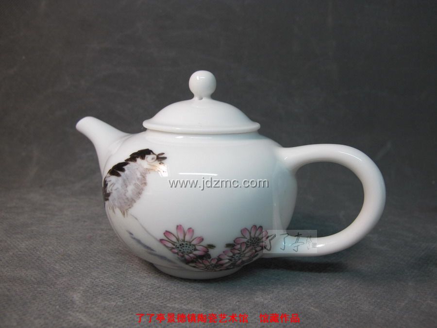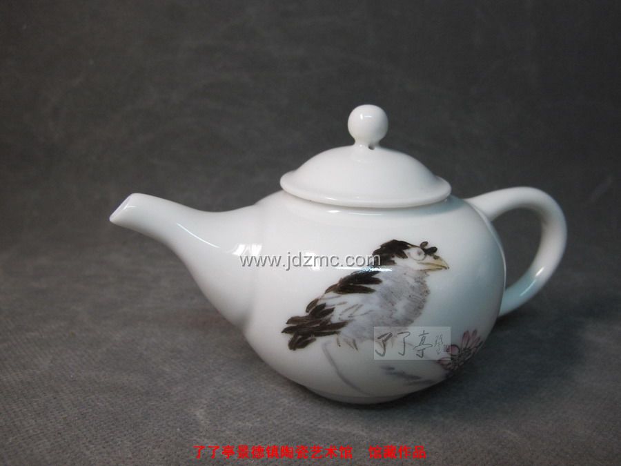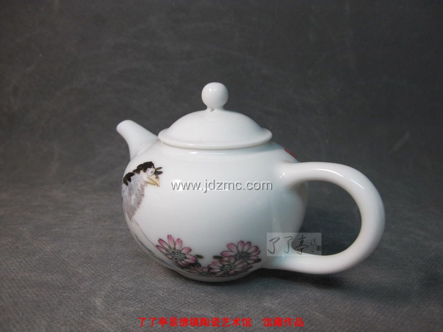 粉彩《菊鸟纹图》茶壶·刘翮天.(国家级专家)