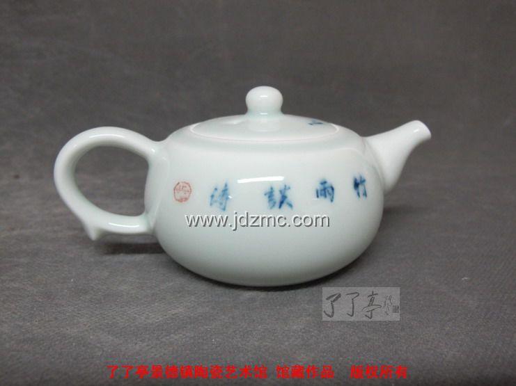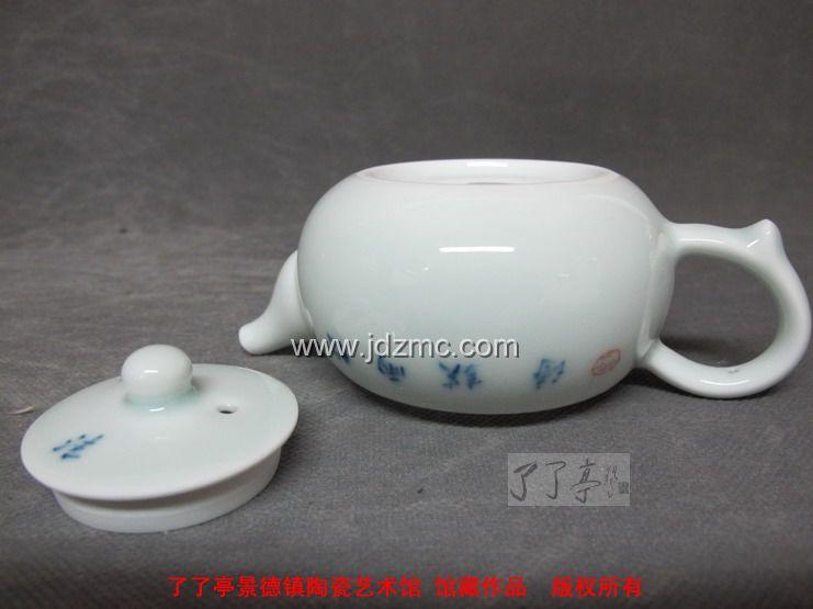 昨天晚上跟一个朋友谈起瓷画中的风骨气质.这是我十分看重的.艺术瓷中的优秀与否.我多是从这方面去感觉.我说比如陆如的青花,自有一种凌云高瞻之气,尊严豁达之骨.这是任何人学不会.学不来的.如您有幸拜访他.坐在他身边,您一定会被这身材不高.自信严肃同时又和气善感的老人折服.画如人.只有有这样气质的人才出得来那样大气的瓷作.秦胜照是他的学生.此学生多方面得益于她的老师.她聪明善学.不光学老师的画,也学老师的作人,慢慢地,先是越来越像老师的画作,然后就越来越多地溶入自己的个性元素,一步一个脚印地走出自己的路来.这是秦胜照的必由之路.