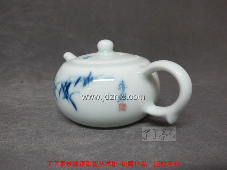 这是刚刚出窑的一个作品.前一阶段一心扑在奥运瓷的制作上.最近刚有心情坐下来画一点作品.他一气呵成地画了几个,但烧出来一看,二个烧坏了.留下二个我选了一个.满意.园园的瓶型,给人一种饱满和谐的感觉.竹幽兰馨.疏密有致.君子之风.尽情流洒.