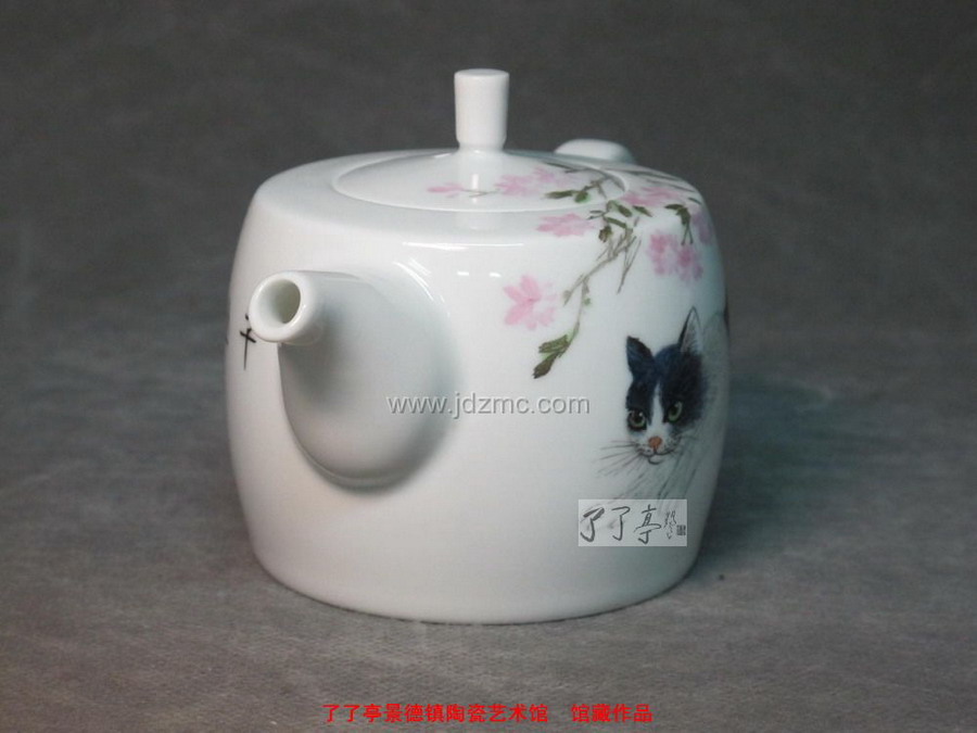 吴锦华 粉彩《小花猫》茶壶
