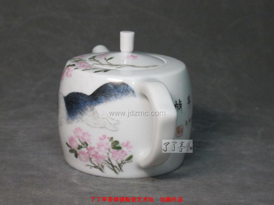 吴锦华 粉彩《小松鼠》茶壶