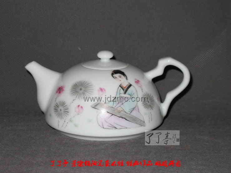 王秋霞 7501瓷质 “荷花仕女”茶壶 16厘米
