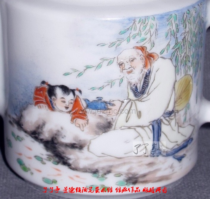 讲一个真实的小故事:十三年前,1996年,母亲第一次到景德镇就有缘地迂到了他.当时母亲看见他桌子上一个口径不到6厘米的小碗,里边有不少姻灰,很不受担待地丢在那里,但这杯子看起来很顺眼,母亲拿起来认真一看,好漂亮!上面居然画二十四个小小的有鼻子有眼的美人.无论面相和装饰都清晰而且娇好,整个布局.发色无可挑剔。吴伟明看母亲那么喜欢,说:"您要是喜欢,给您,最优惠,300元."。母亲立马掏了300元把碗拿下来了.这300元当时对母亲可不是小数字.母亲到景德镇只有2300元.当时50元可在市场上买到很大而且还不错的瓶。但母亲毫不犹豫,欣喜于心,当天在旅社里把玩了一个晚上。回到武汉,常得意地拿出来给朋友们欣赏.常常引来一片唏嘘声。当时怕别人要买,有意标了个1500元的价格,朋友们知道母亲的意思,也没人一定要买.放了大半年。来了个到武钢搞设备备件的法国工程师,爱瓷爱到痴迷程度,自从他发现了那个母亲藏在角落里的小碗开始,他一有空就来缠着母亲要这个小碗.一个星期来几次,先要还价,后来不谈价了,只求母亲放手给他。但母亲一直割舍不下没有答应。那年冬天很冷,有一天大雪漫天,整个市场没有几家开门,母亲因为与一朋友有约,九点到了市场,刚一坐下,一个高大的人影就跟进来了,一头一身的白雪,是他,法国工程师!他不说话,冻得红肿的手伸进大衣内胸袋掏出一张纸,递到母亲眼前:一张飞机票,他很紧张地说:我下午三点要起飞回法国,以后工作换了,没机会再来了,这碗能不能给我?没等母亲回过神来,他已把柜子里的碗拿到手里,一把钱也几乎同时放进柜子。母亲有点感动,不好意思拒绝。很心痛地看着他怀里揣着母亲心爱小宝贝飞快转身不见在一片大雪中了。当时的心情很复杂,反映不过来,但后来只要一想起来就很心疼,必竞,母亲也是个爱瓷爱到痴迷的收藏者!而且也流落得太远了,再想看也看不到了。