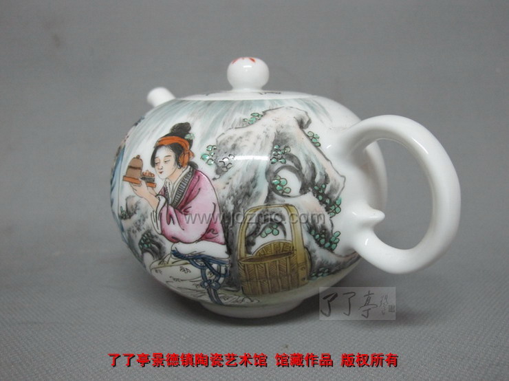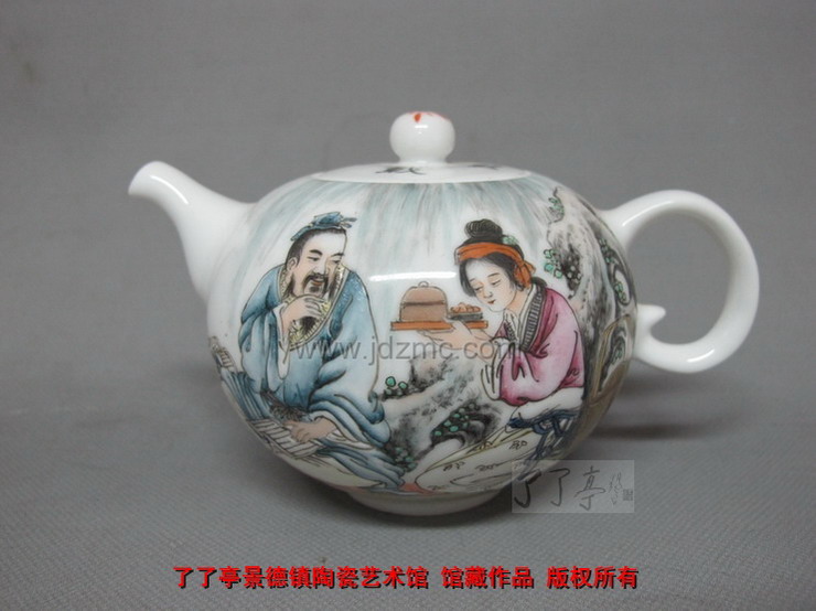 拿起此壶,心喜尤畅,男尊女卑,三纲五常,三从四德,举案齐眉,日韩封建,大男人之根吾心尚存。于初涉爱河,一路赏花做伴,时光匆匆已逾十载。想当年,红袖秉烛,添香夜谈,晓月风清,花前柳下,激情少年,其间,过云南,离湖北,入江西,遍寻生计,沧海十余载。于婚后,方乃安定,以拼命三郎之精神,为吾子留下了些许资产,为人生保全了些许功名。三十载蹉跎,对镜忆昔,堂堂风华正茂之少年,已步而立,只是那些花前月下时光难忘,回析往事,一路衔花问草,添香与红袖,或乃吾幸,或乃吾命,笑泪相存,亦促成了吾今日成就,申藏感激,唇留微笑,桃花谢了春红,太匆匆,年华如水,倏然间春夏秋冬,只叹是,人有长憾水长东。了了亭·李申盛/文