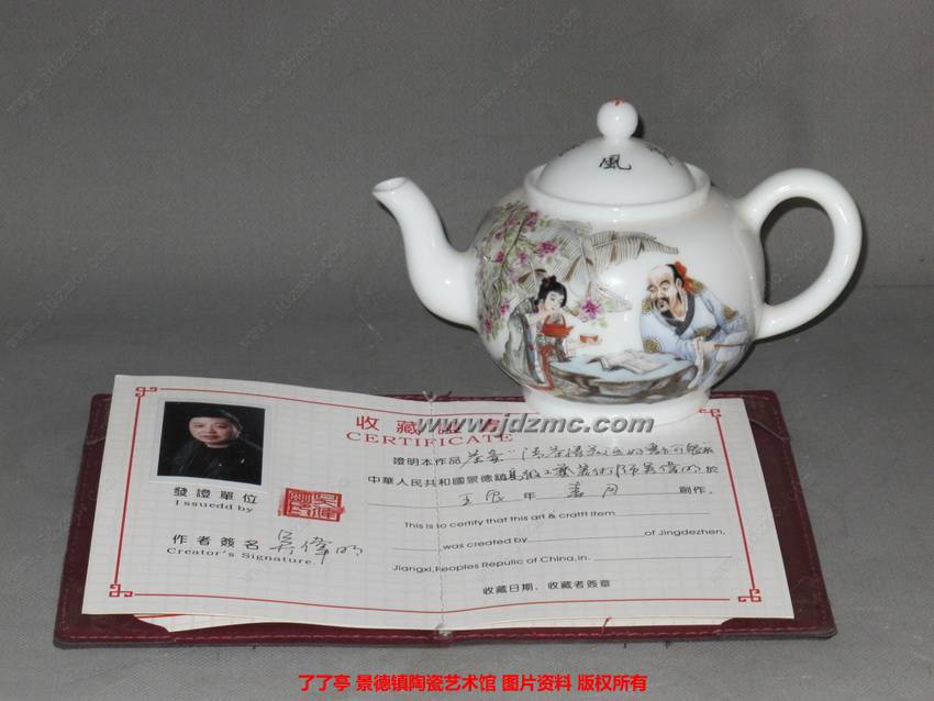 讲一个真实的小故事:十三年前,1996年,母亲第一次到景德镇就有缘地迂到了他.当时母亲看见他桌子上一个口径不到6厘米的小碗,里边有不少姻灰,很不受担待地丢在那里,但这杯子看起来很顺眼,母亲拿起来认真一看,好漂亮!上面居然画二十四个小小的有鼻子有眼的美人.无论面相和装饰都清晰而且娇好,整个布局.发色无可挑剔。吴伟明看母亲那么喜欢,说:"您要是喜欢,给您,最优惠,300元."。母亲立马掏了300元把碗拿下来了.这300元当时对母亲可不是小数字.母亲到景德镇只有2300元.当时50元可在市场上买到很大而且还不错的瓶。但母亲毫不犹豫,欣喜于心,当天在旅社里把玩了一个晚上。回到武汉,常得意地拿出来给朋友们欣赏.常常引来一片唏嘘声。当时怕别人要买,有意标了个1500元的价格,朋友们知道母亲的意思,也没人一定要买.放了大半年。来了个到武钢搞设备备件的法国工程师,爱瓷爱到痴迷程度,自从他发现了那个母亲藏在角落里的小碗开始,他一有空就来缠着母亲要这个小碗.一个星期来几次,先要还价,后来不谈价了,只求母亲放手给他。但母亲一直割舍不下没有答应。那年冬天很冷,有一天大雪漫天,整个市场没有几家开门,母亲因为与一朋友有约,九点到了市场,刚一坐下,一个高大的人影就跟进来了,一头一身的白雪,是他,法国工程师!他不说话,冻得红肿的手伸进大衣内胸袋掏出一张纸,递到母亲眼前:一张飞机票,他很紧张地说:我下午三点要起飞回法国,以后工作换了,没机会再来了,这碗能不能给我?没等母亲回过神来,他已把柜子里的碗拿到手里,一把钱也几乎同时放进柜子。母亲有点感动,不好意思拒绝。很心痛地看着他怀里揣着母亲心爱小宝贝飞快转身不见在一片大雪中了。当时的心情很复杂,反映不过来,但后来只要一想起来就很心疼,必竞,母亲也是个爱瓷爱到痴迷的收藏者!而且也流落得太远了,再想看也看不到了。