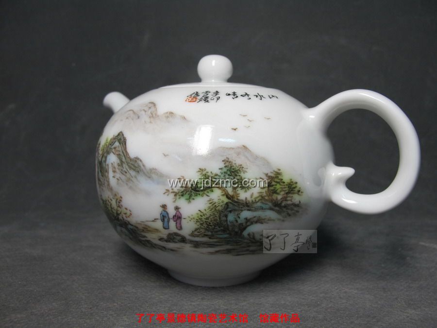 文才是绘画的基础,作为老师的江葆华认真的在做学术,于腹中垒起万卷诗书,这样的人画出画来,往往会文气十足。他的瓷绘作品格调都比较高雅,相信这和艺术家的人品有一定的关系,但不是全部,更重要的是艺术家正在接受的教育和所处的环境。江葆华通过讲台感受着当代艺术的变化过程中所带来的冲击,便将这种心情转换成他自己的理解,在他的陶瓷作品中充满了昂扬新意的表现精神,并含韵着浓厚的古老民族文化,好似一张拉满的弓,充满了张力。了了亭 李申盛 /文