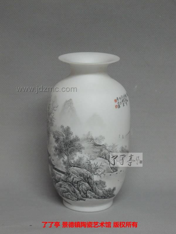 景德镇有的是“艺术家”,然而,像他这么好的功底,人数不多,尤其当今陶瓷艺木界,颇有点浮躁之气,一个年青人,每天睁大着眼晴一笔一划,一点一点,要耐得住寂寞啊!难能可贵。他们肩负着传承陶瓷精细山水画的历史责任。当然,他并没有走到最高峰,任重而道远,对于一个山水画家,要依靠自身功力,重新诠释陶瓷“山水”,应该成为一种至关重要的事业追求,溶入白己的艺术生命中,并体现在陶瓷艺术创作之中。