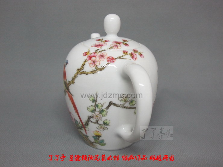 | 徐国明 粉彩《红梅绶带》茶壶 宽:16厘米 | |||||