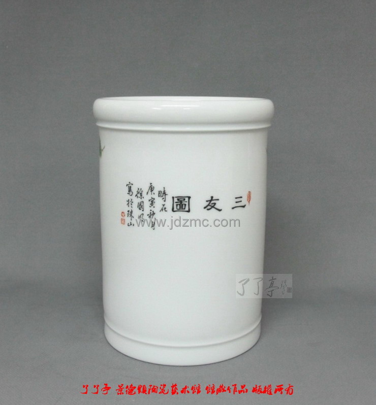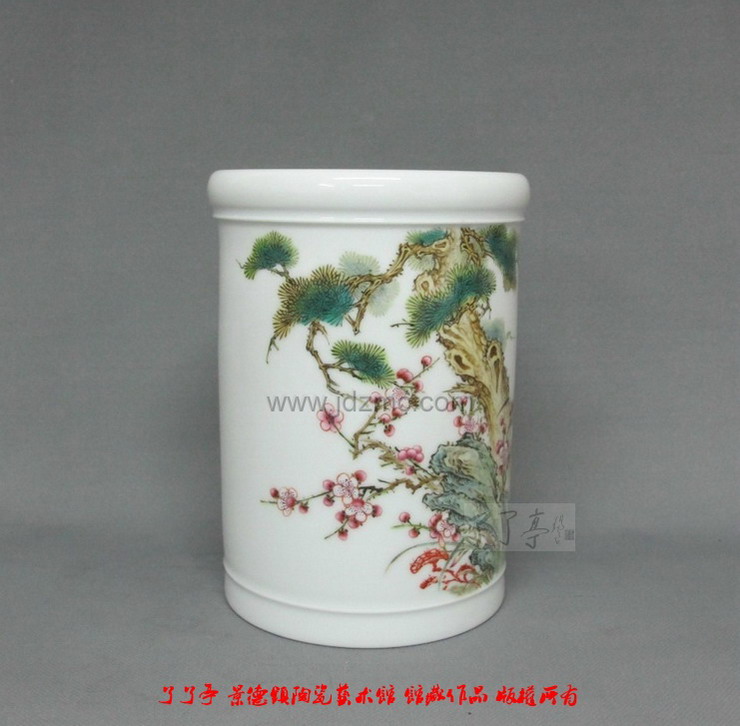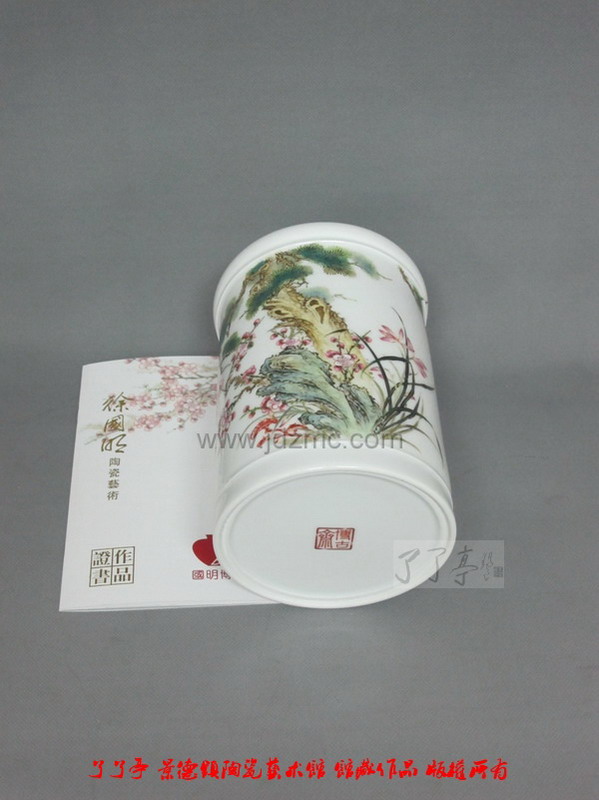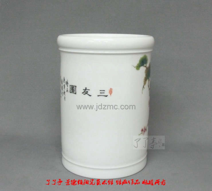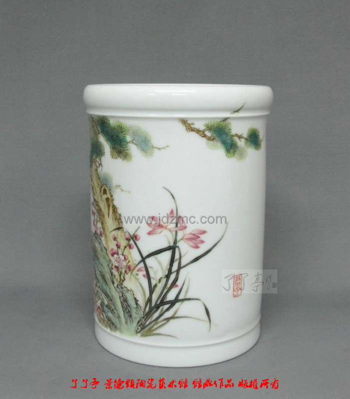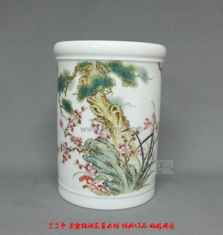 | 徐国明 粉彩《三友图》笔筒 高:18厘米 直径:12.5cm | |||||