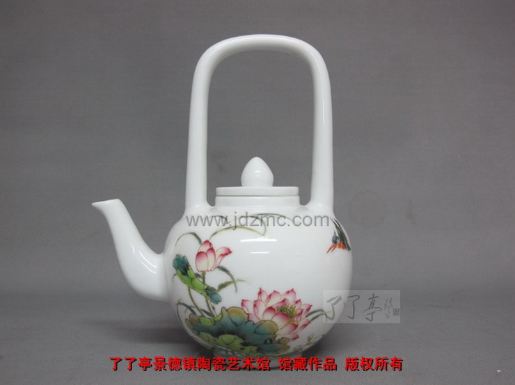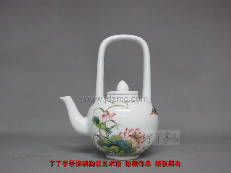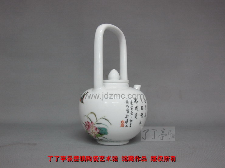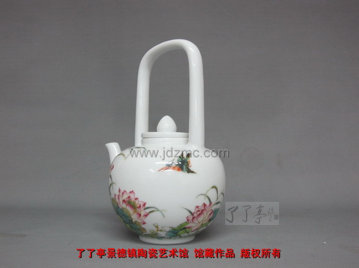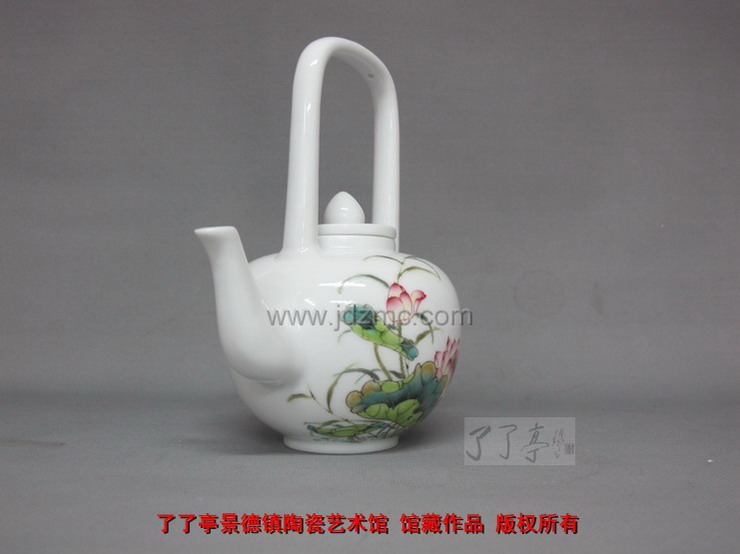 | 徐国明 粉彩《荷塘清趣》提梁茶壶 高度:16厘米 | |||||
