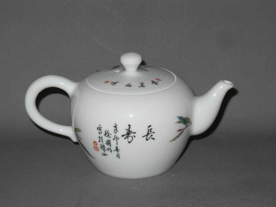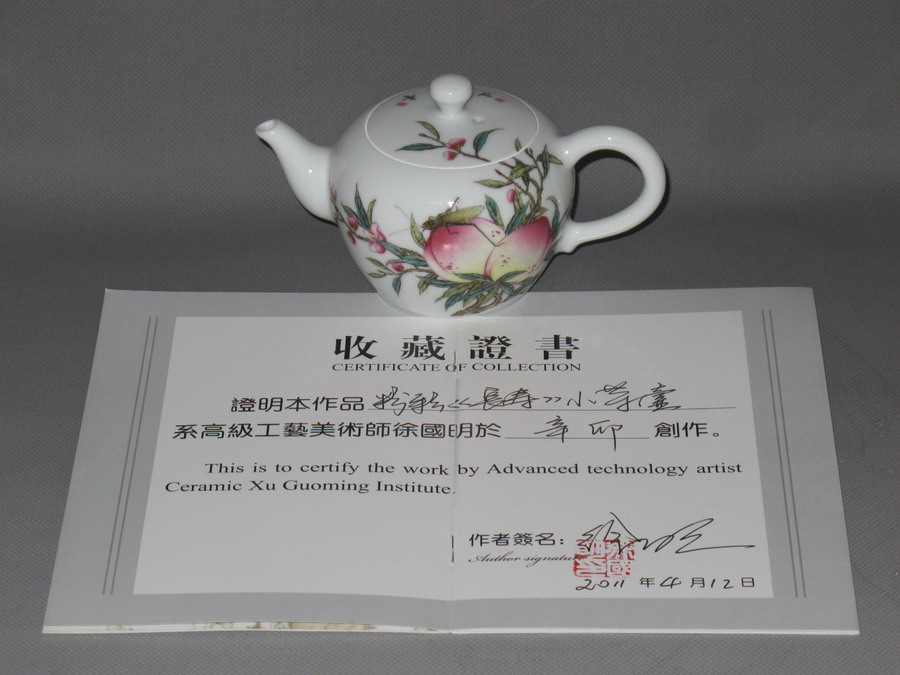 徐国明 粉彩《长寿》茶壶