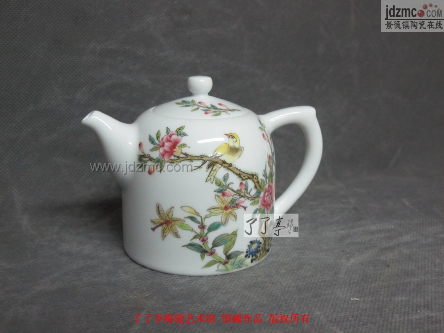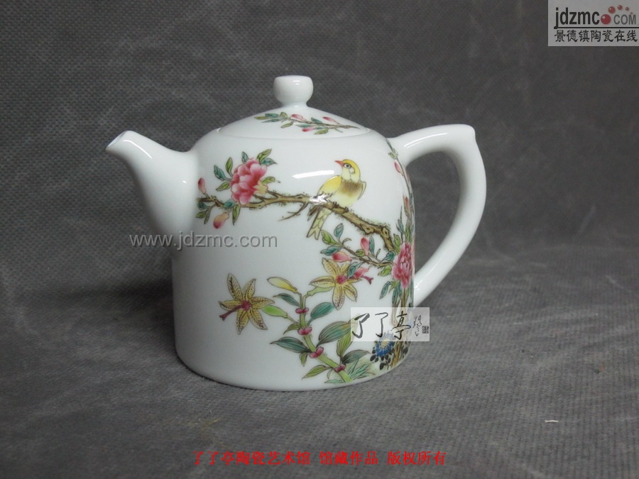 徐国明 工笔粉彩花鸟茶壶《石榴黄鹂》
