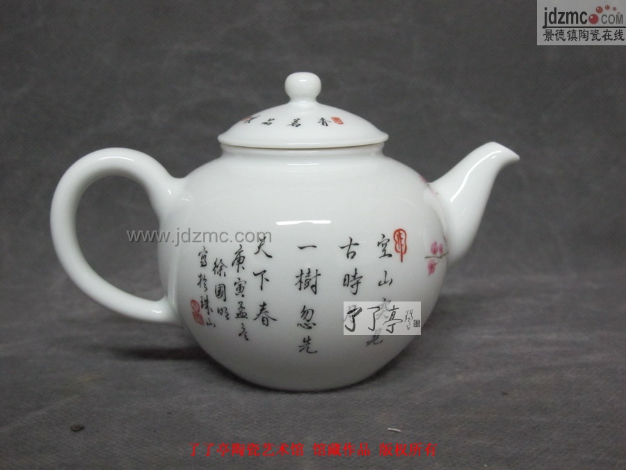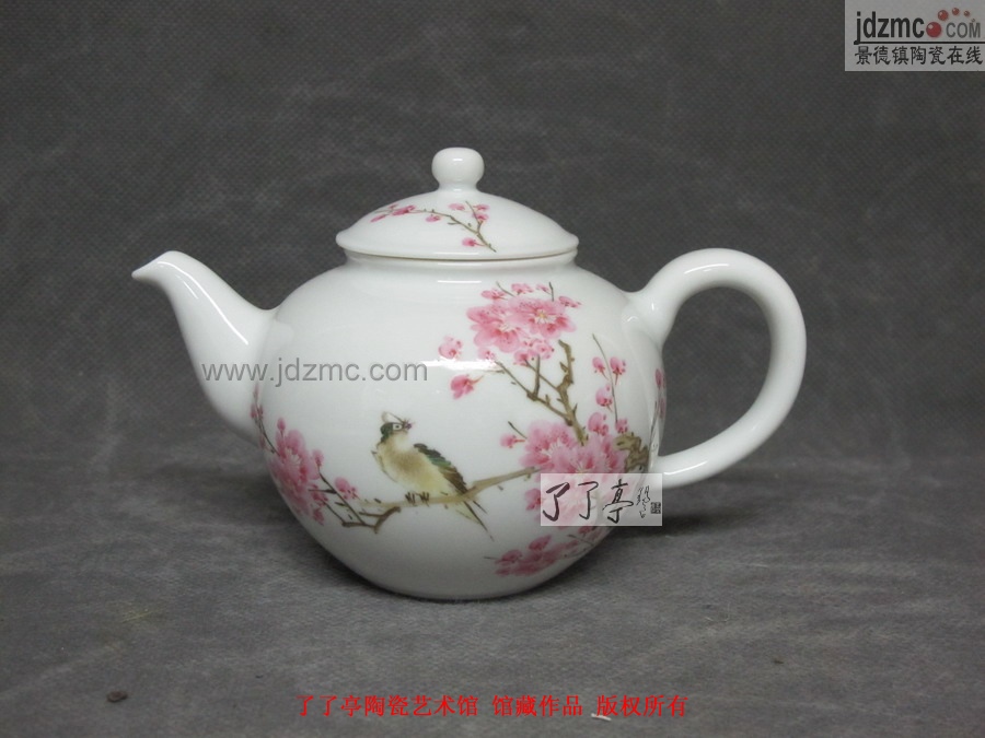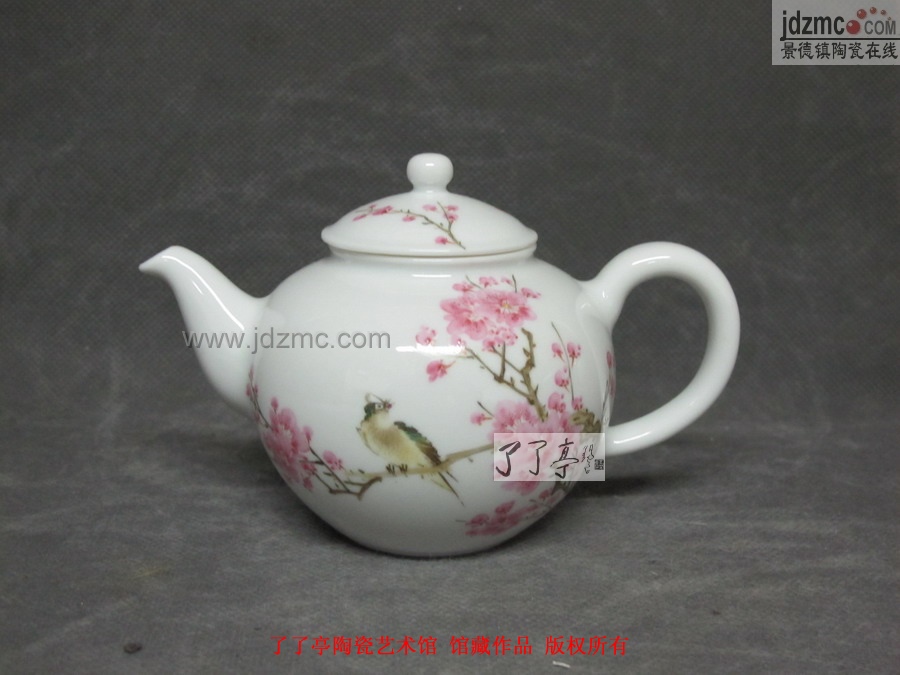 徐国明 工笔粉彩花鸟茶壶《水点梅花》