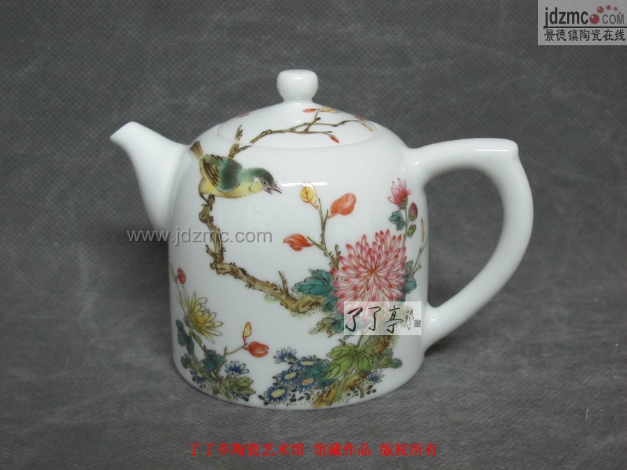 徐国明 工笔粉彩花鸟茶壶《菊花小鸟》