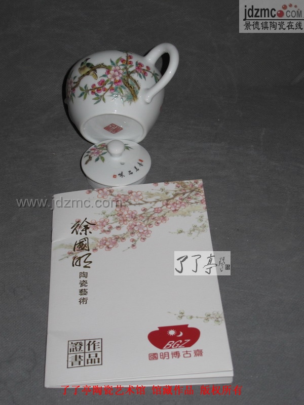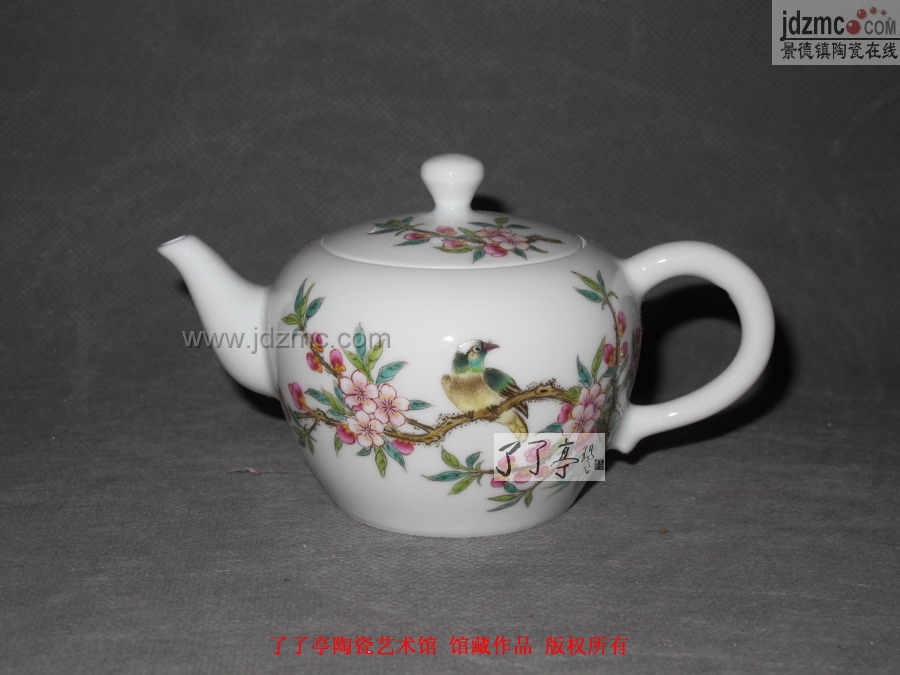 徐国明 工笔粉彩花鸟茶壶《桃花飘香》