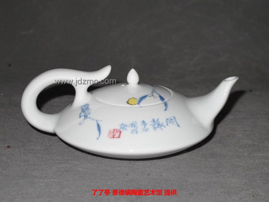 徐国明老师新款青花斗彩茶壶,是徐老师2011年下半年突破之作,为了彰显粉彩斗彩花鸟的美,徐国明老师刻意将笔下的青花色调,调和的非常柔美与清瘦,借温润的白与雅致的青,塑造了宛如一位款款走来的江南女子,以其恬静、淡雅的气质卓立于人群。
