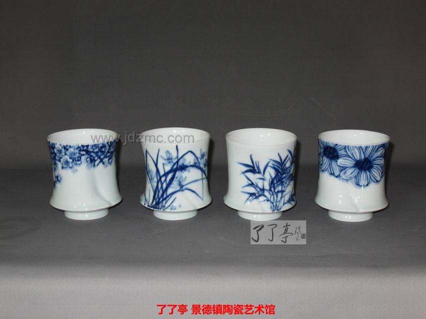 杨杰 青花梅兰竹菊茶杯