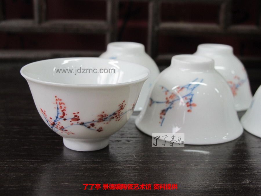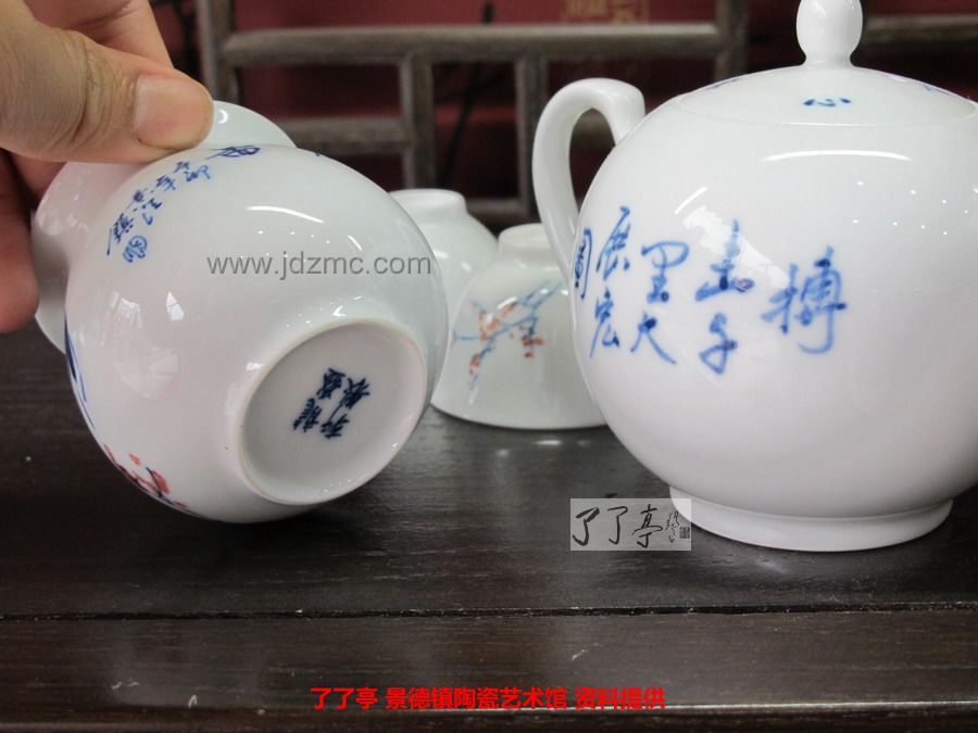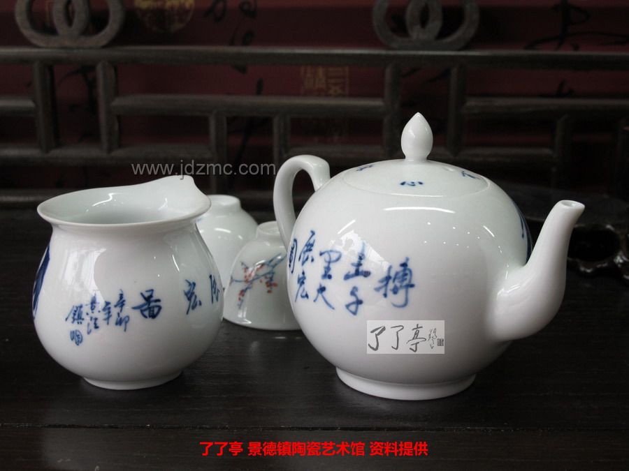 《吟春图》景德镇陶瓷青花分水花鸟茶具-…
