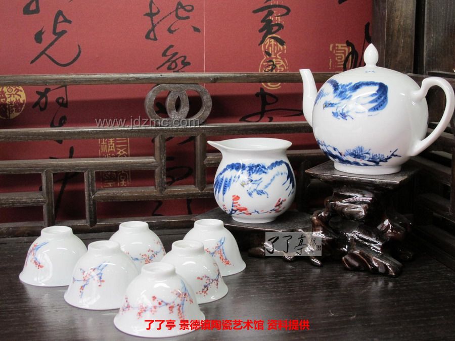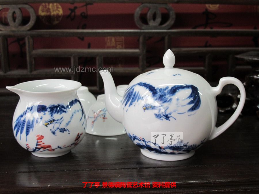 《搏击长空》景德镇陶瓷青花花鸟茶具-龙盛轩
