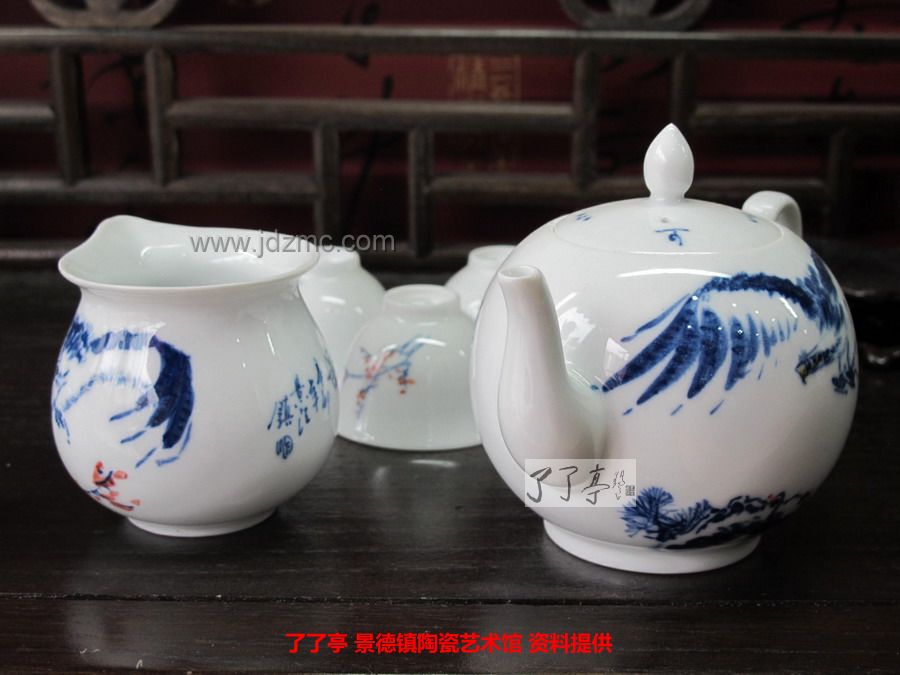 《荷塘清趣》景德镇陶瓷青花花鸟茶具-龙…
