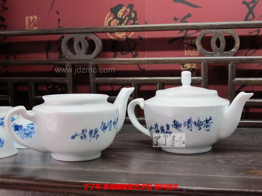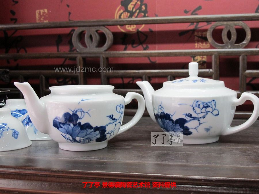 《荷塘清趣》景德镇陶瓷青花花鸟茶具-龙盛轩