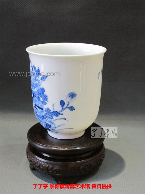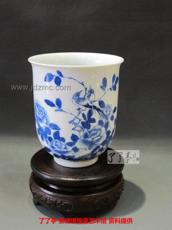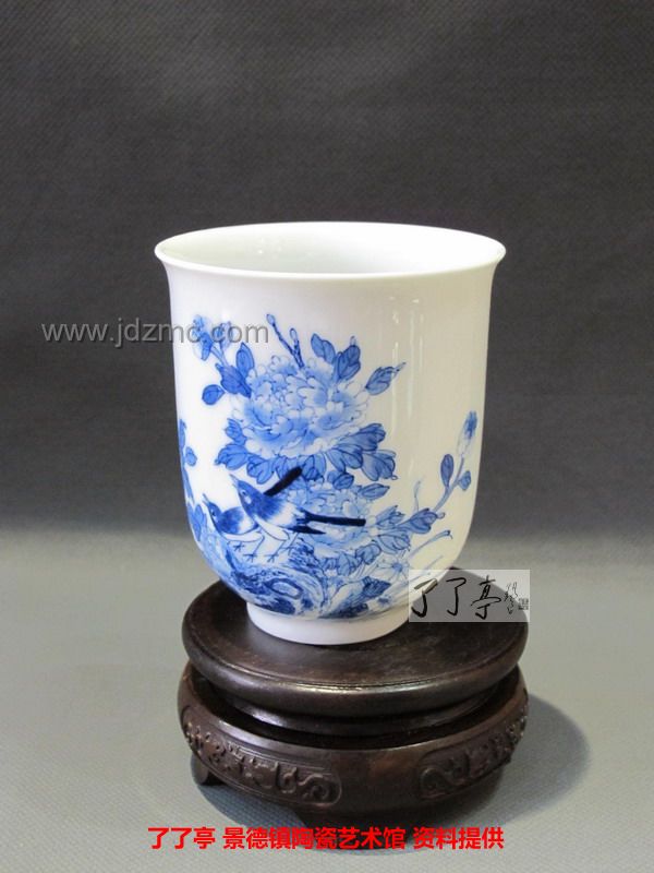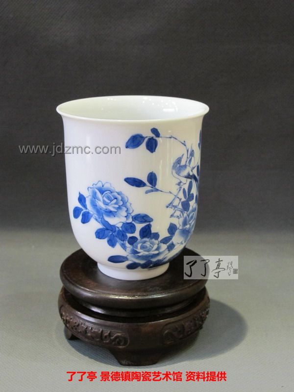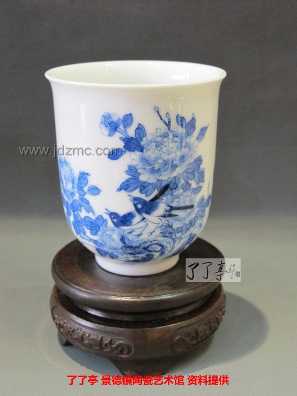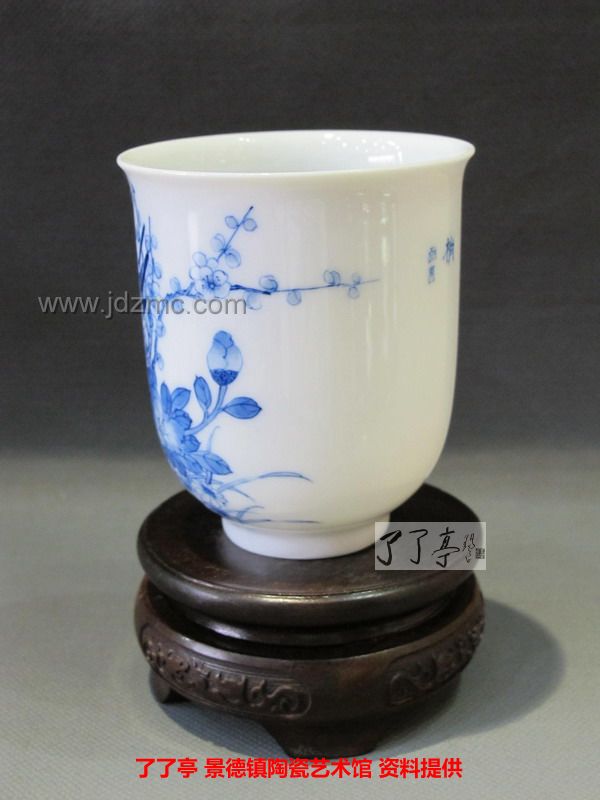 精品《四季花鸟》景德镇陶瓷青花手工茶杯-龙盛轩