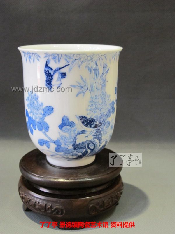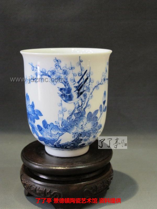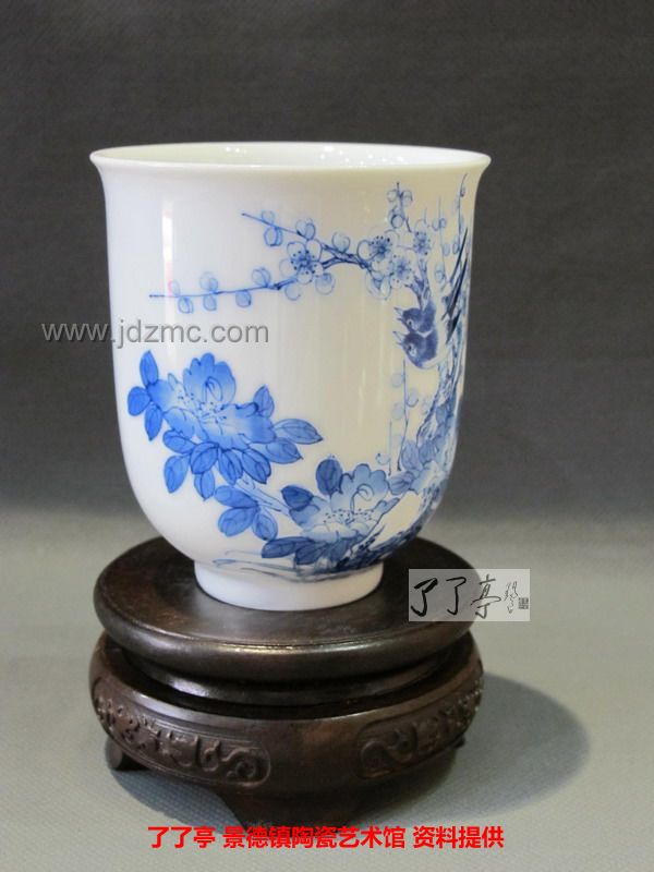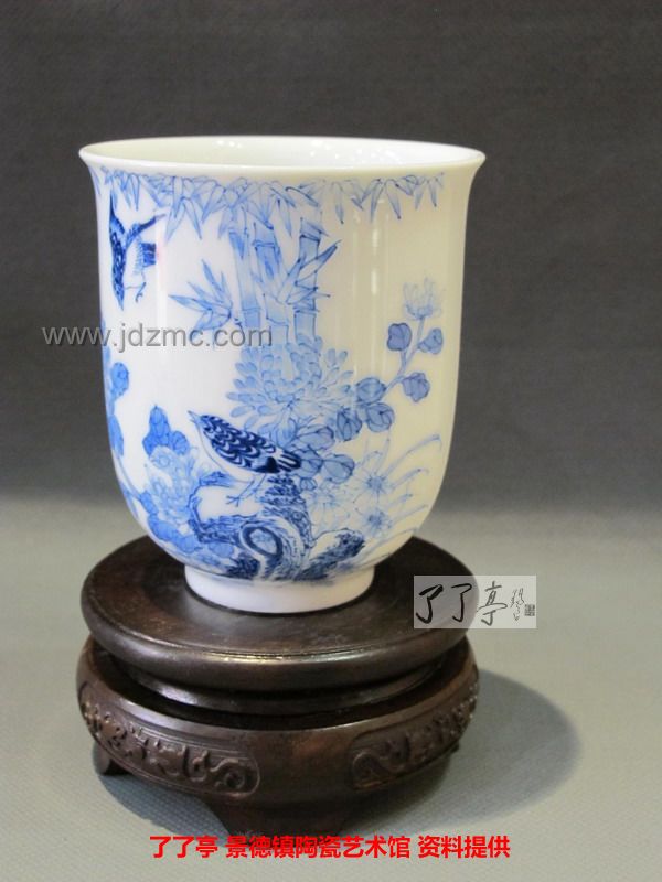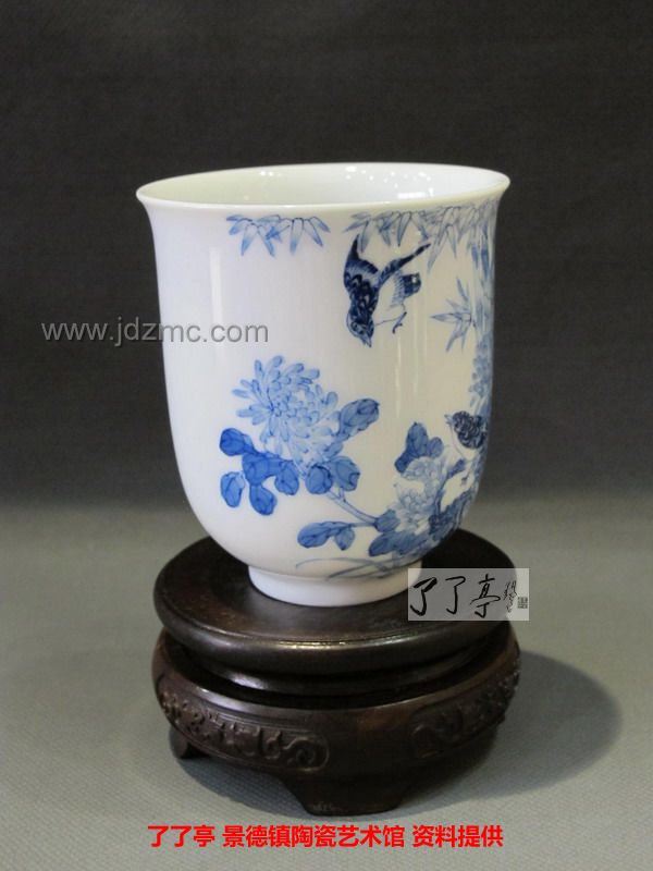 精品《四季花鸟》景德镇陶瓷青花手工茶杯-龙盛轩