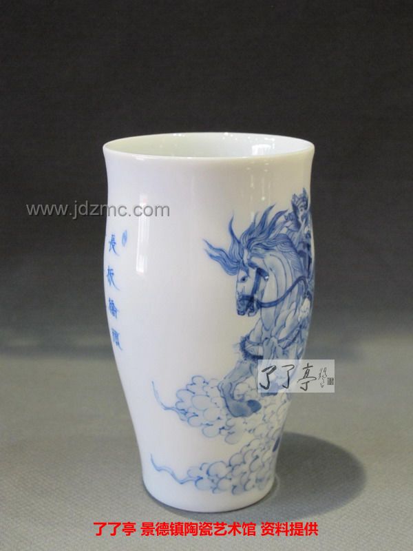 精工《五虎上将》景德镇陶瓷青花缸体单杯-龙盛轩