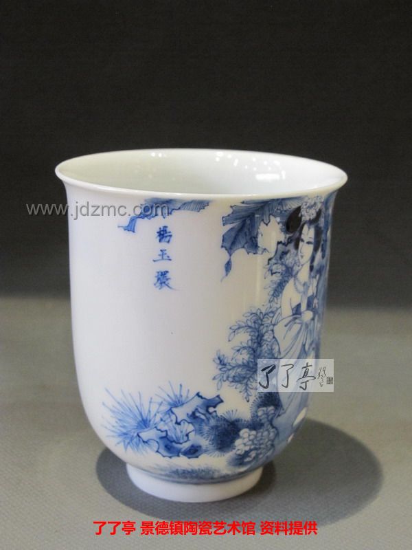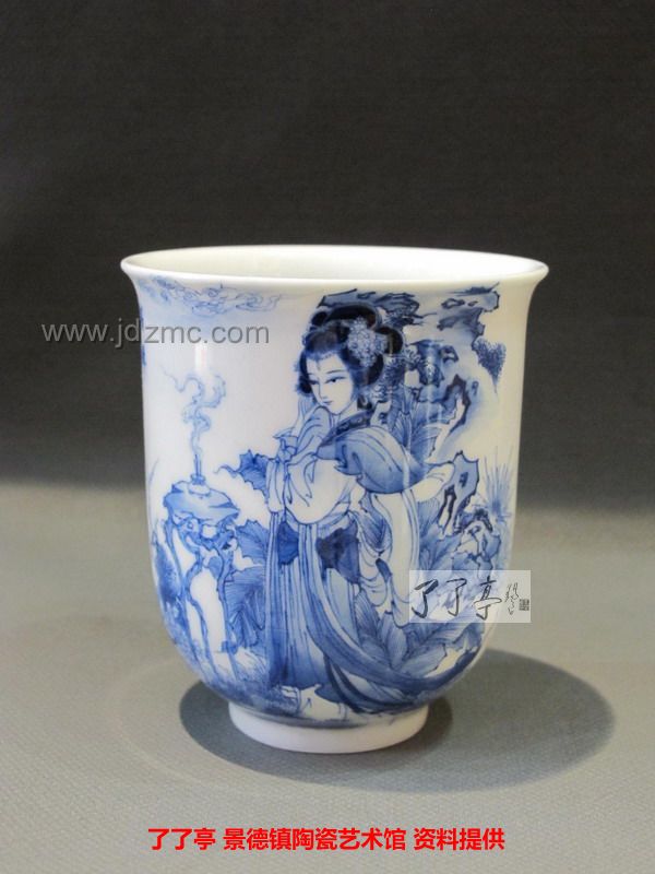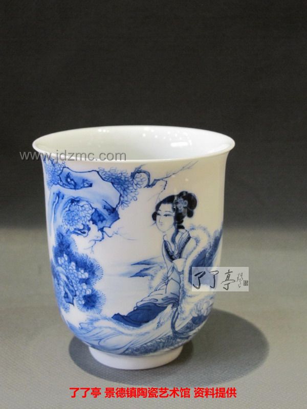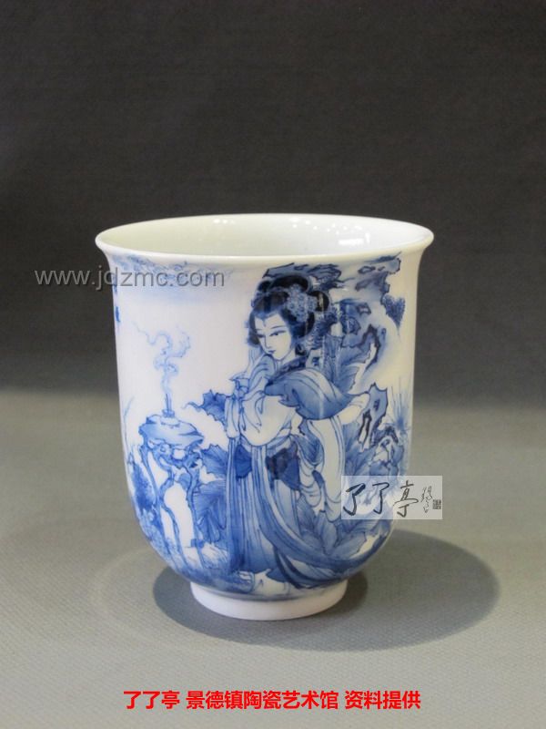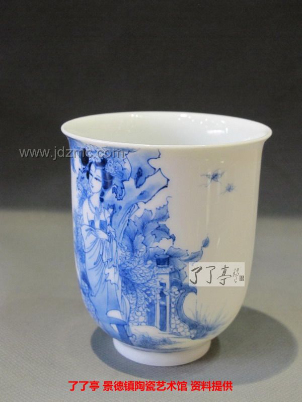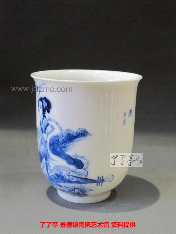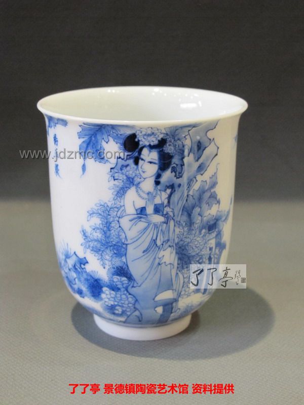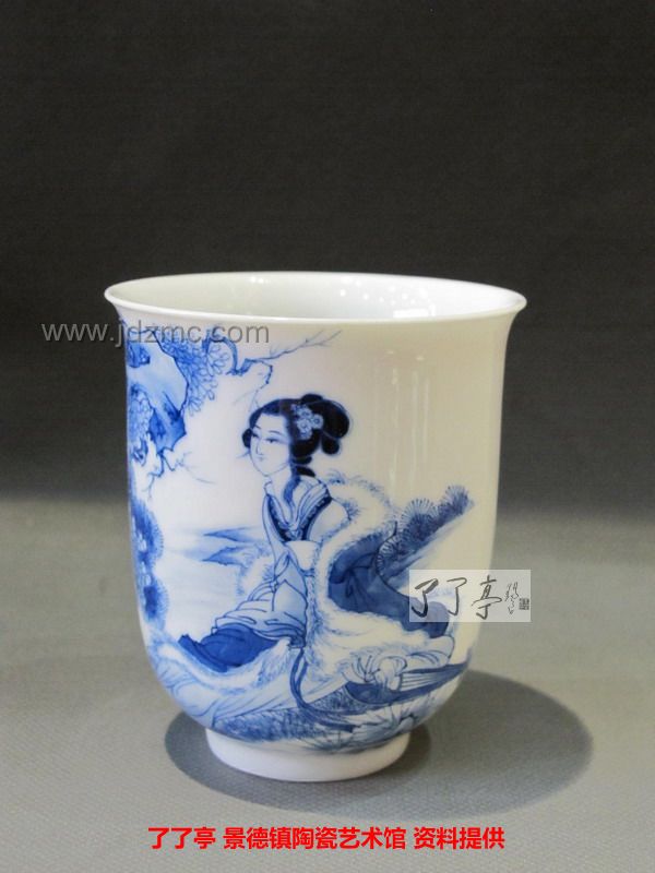 精工《四美图》景德镇陶瓷青花缸体单杯-龙盛轩