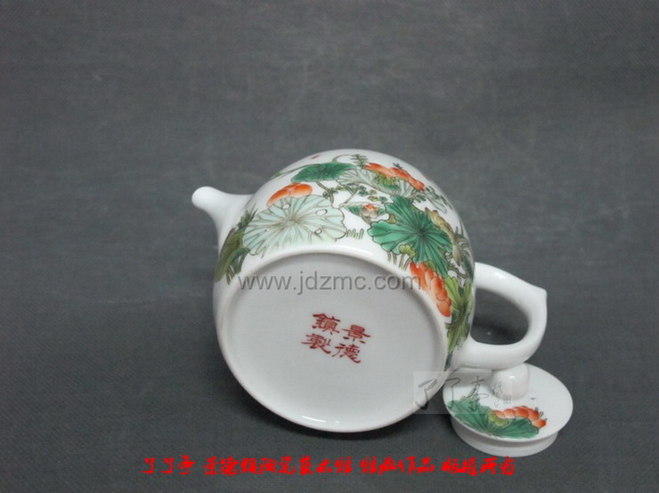 张万莲 古彩“荷塘清趣”茶壶 宽度:15cm