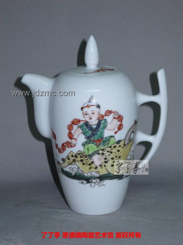 张万莲《财源广进》古彩童子茶壶