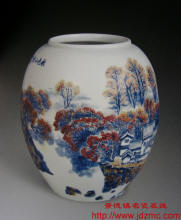 《秋色乡村》青花釉里红