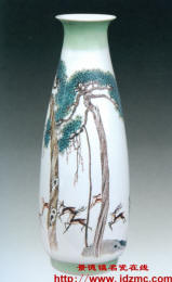 早年师从刘雨岑,学习花鸟草虫,深得刘雨岑的艺术要领,又有很高的国画修养。作品构图简练,画法精巧老到,格调高雅,情趣隽永。王成之的粉彩花鸟草虫在当代景德镇陶瓷艺术天地中一枝独秀。青花作品浑厚、古拙、笔筒意浓,特别是芦雁、奔鹿、松鹤独具风韵,深得同行的赞赏。作品多次在国内外展出,获奖或被收藏。总之他的作品能诗书画结合,文化品位高,经久耐看,玩味无穷。1994年国画“山雨欲来”获中国国际文博会美术类一等奖;“寿桃小茶具”人选中国茶与瓷文化展并获荣誉奖;1995年应邀参加中国希望工程代表团访问香港,并在陶艺作品义卖展销会上作画献艺;中央电视台“书画艺苑”栏目介绍王成之的作品;2000年1月国画“天鹅湖之春”人选中华民族书画长卷,并在中国美术馆展出;2002年9月应邀在新加坡举办陶瓷艺术联展,并接受新加坡国家电视台专题采访。2003年应邀到澳大利亚和中国台湾作艺术交流。《人民日报》发表介绍其陶瓷艺术的评论文章,传略人选《人民日报》(海外版)“中华艺苑名家”专栏。作品“双雁”人选当代《传世名画卷》,作品人编《世界华人文学艺术界名人录》、《中华人民共和国名家作品集》、《中国美术选集》、《世界美术大典》、《景德镇陶瓷全集》、《景德镇当代美术作品集》、《中国当代陶瓷名家精品鉴赏》。 |
