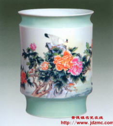 表现和传达生活之美, 又达到以实写意, 以意传情的艺术境界。 她的用笔不拘一格: 工笔写意兼而有之, 又充分利用材质并结合器型的特点进行装饰。