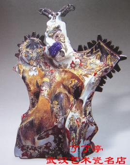 作品的造型、绘写、染色均手工完成。泥坯的成型集捏、塑、刻、划、盘等技法于一体,随意中见灵性。作品以白釉为主,兼施少许颜色釉,入窑烧成后,再以粉彩、新彩、古彩诸技法绘人物、山石、花草、树丛、星空等,犹如自然生活中的 "片言碎语"组构了似曾相识、无法言状的梦境。