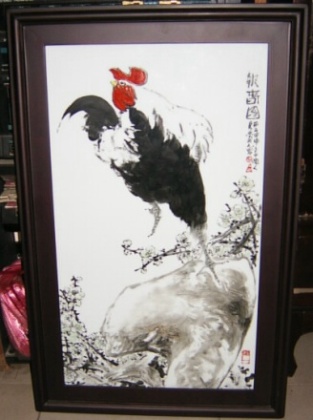 长方形,平面。梅的枝干刚劲虬老,花开于寒冬腊月,因此用它来象征纯洁、高尚、坚贞不屈。画面右下侧画一梅干分支曲折向上,出枝洒脱,虬曲苍劲,满树红梅浓淡相生,开合有势,一派盎然生机,笔力刚劲相济。该作品构图与造型的完美结合,意境耐人寻味。
