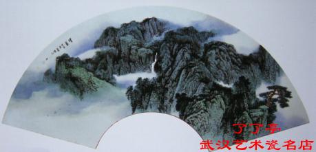 扇形,平面。画面以新彩表现技法描绘盛夏山水景色,构图采用对比相衬、下静上动的手法:远处飞瀑似带,飘然而下;近处云气飞动,层峦叠嶂,山石、古松时隐时现,生气盎然,巧拙奇秀,变化万千,令人赏心悦目。